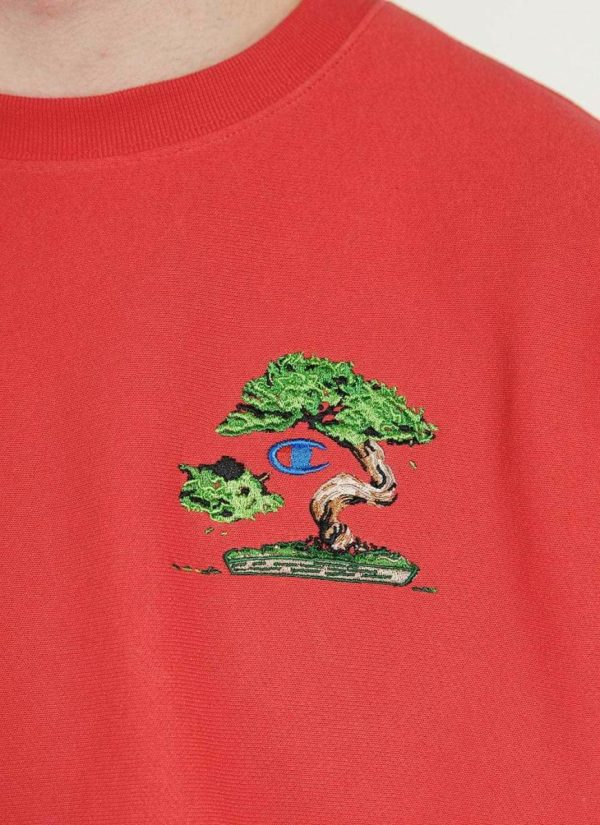 - Features: Men’s heavyweight sweatshirt with bonsai and Champion embroidery. Embroidered by Percival in London on a 400 gsm reverse weave premium fleece and with a crewneck, this red champion sweatshirt is ideal for cooler weather.