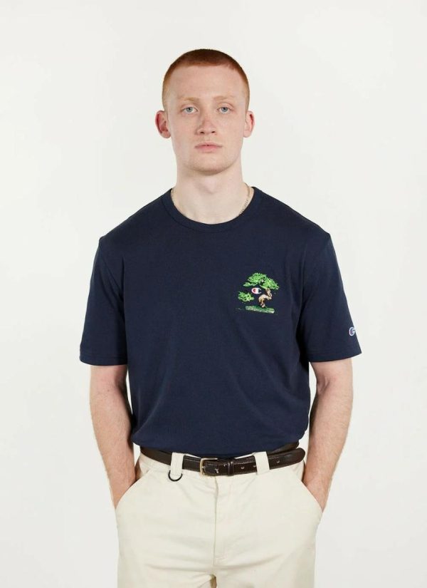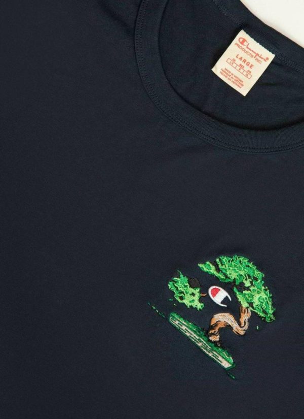 - Features: Men’s short sleeve t shirt with bonsai and champion embroidery. Made from a 180 gsm premium cotton, this navy champion t shirt is ideal for warm weather.