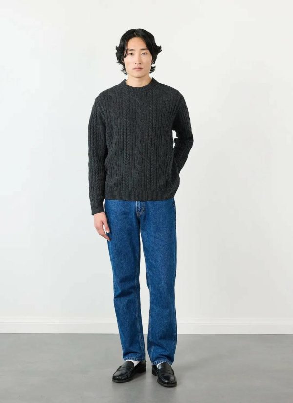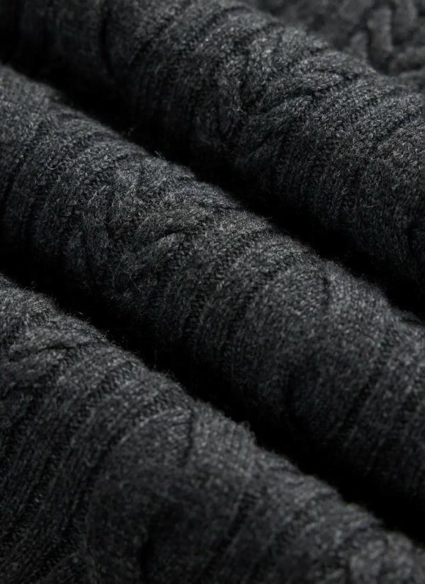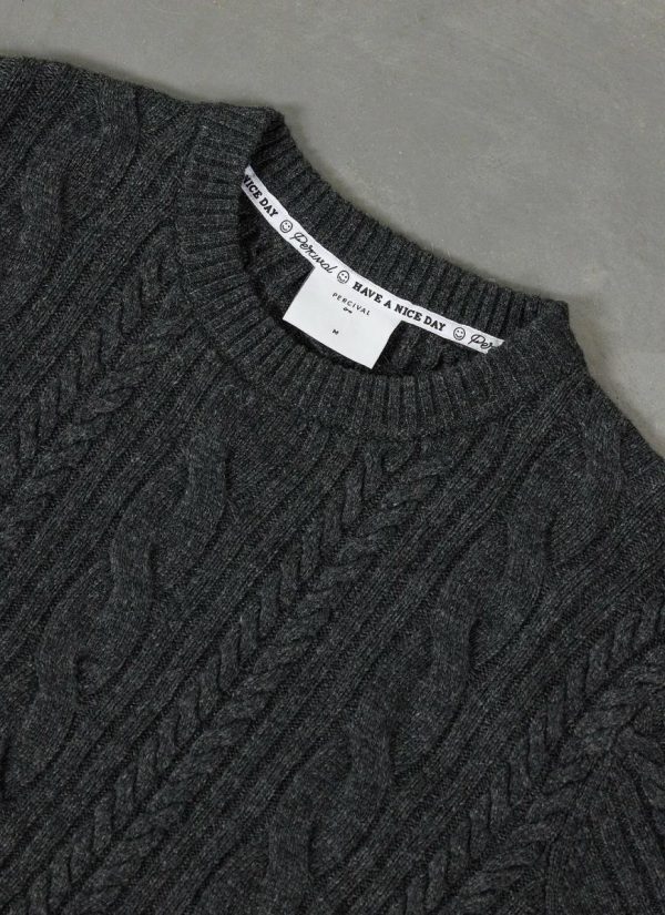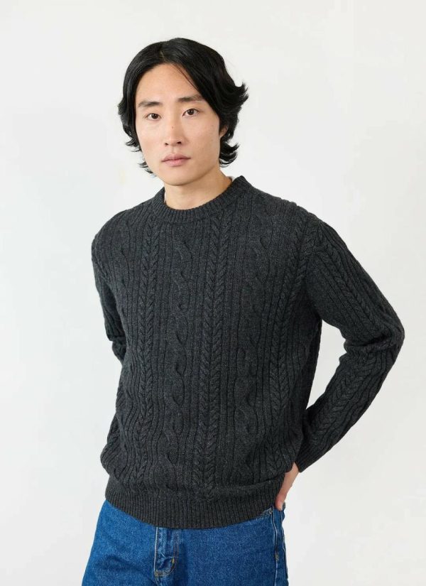 - Features: Men’s cable knit jumper in a wool blend. In a heavy gauge cable knit and oversized fit, this grey knitted jumper is ideal for layering in the colder months.