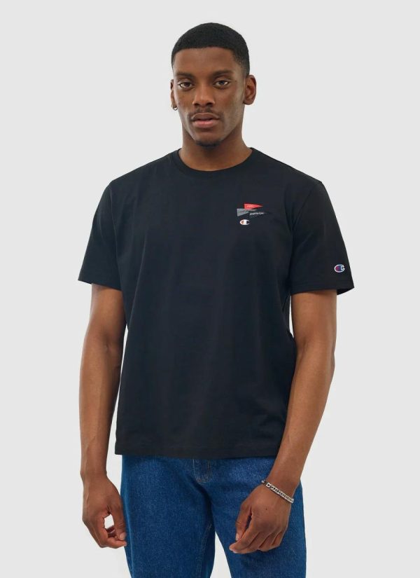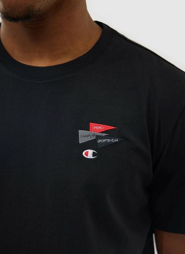- Features: Men’s 100% cotton Champion t shirt, embroidered C logo at sleeve, marking Champion quality. Embroidered and printed in London with hand drawn Percival illustrations, made in limited quantities, for a limited time only.