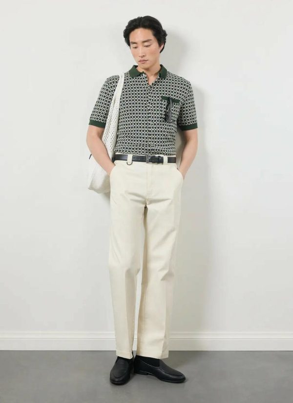 - Features: Men’s Knitted Shirt with Short Sleeves, Collar and Front Pocket in Jacquard Print