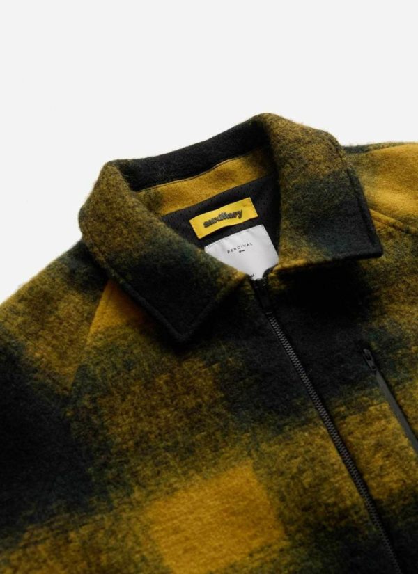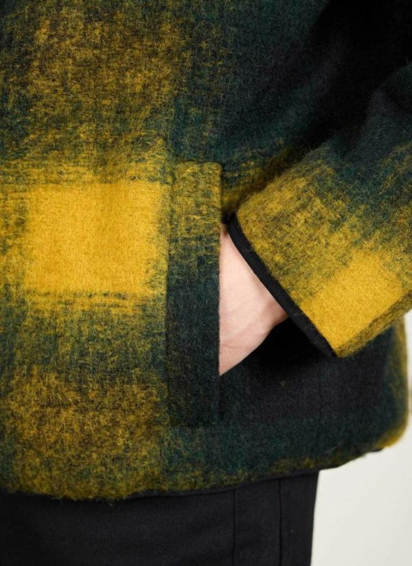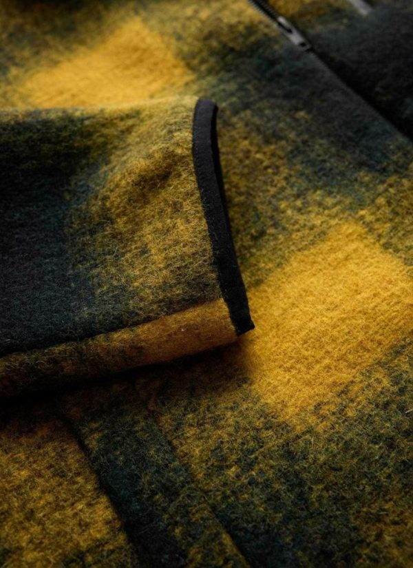 - Features: Men’s checked jacket made from a soft wool and recycled materials. Finished with airtex mesh lining, silicone zip pullers and welt pockets, this yellow wool jacket is perfect for the Autumn and Winter.