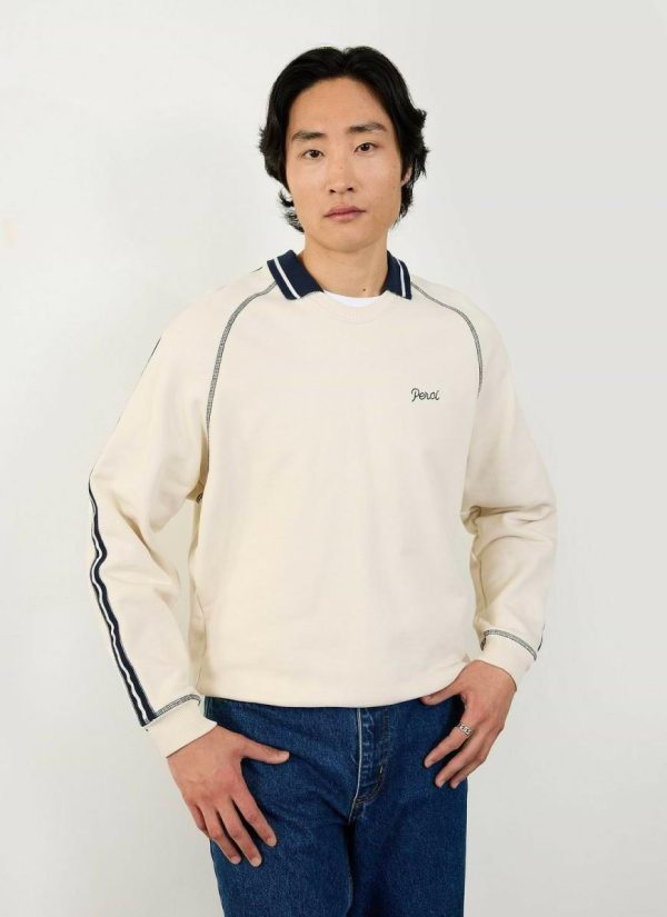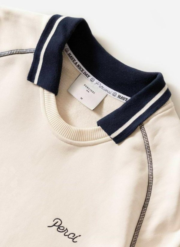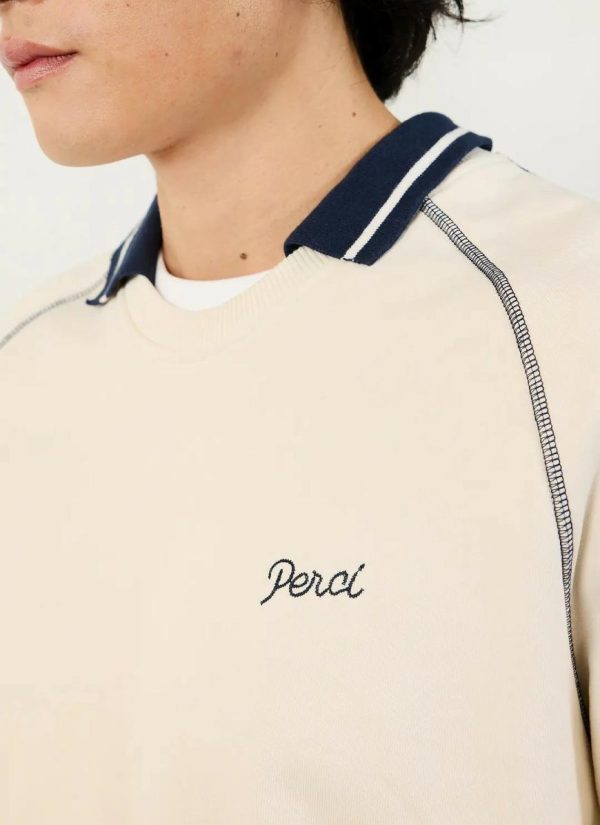 - Features: Men’s heavyweight sweatshirt crafted from 100% organic cotton, featuring a 90s-inspired relaxed fit. This cream sweatshirt showcases a Perci chainstitch check logo embroidery, offering a retro vibe with modern comfort. Its slightly boxy fit makes it versatile for everyday wear, combining nostalgic style with practicality.
