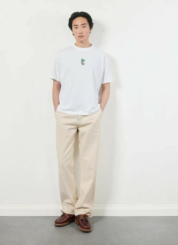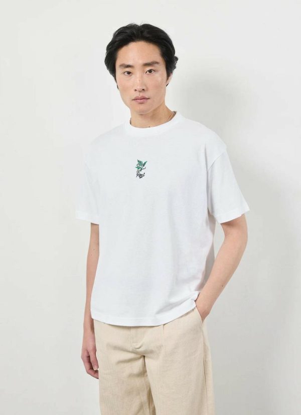 Men Fern Oversized T Shirt | Embroidered Organic Cotton | White | Percival Boxy T-Shirts