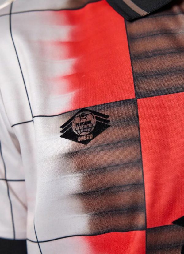 - Features: Men’s football shirt with original artwork. From the Umbro x PCVL collection, this red football shirt is finished with a collar, snap placket, and tape detailing.