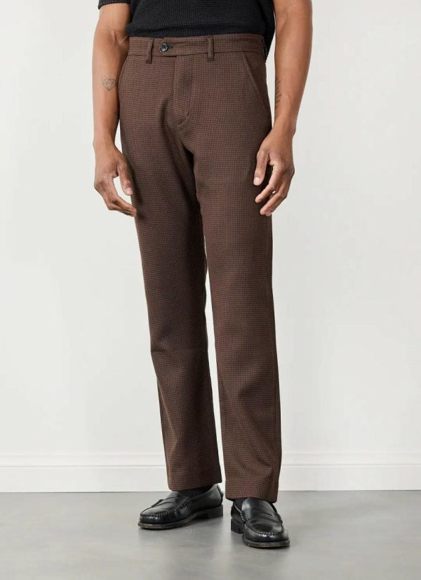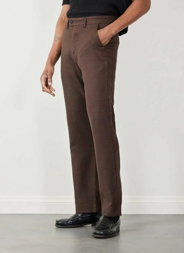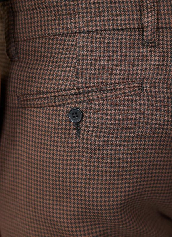 - Features: Men’s houndstooth design suit trousers in brown. With a matching blazer and cap, these straight leg trousers are ideal for smart or casual outfits.