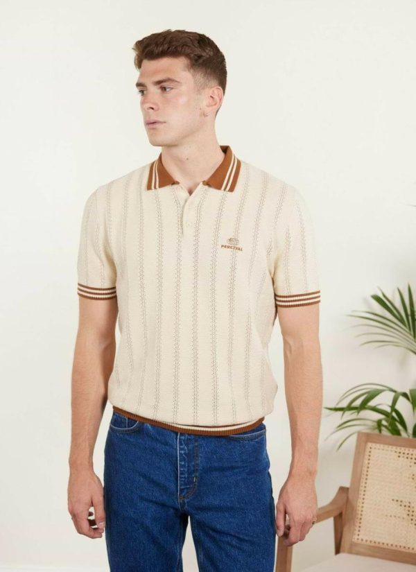 - Features: This classic, best-selling knitted polo silhouette is timeless, keeping you looking smart and feeling comfortable all day and night. Made from 100% cotton, this cream polo shirt features a relaxed fit and comes in a stylish ecru and brown color combination.