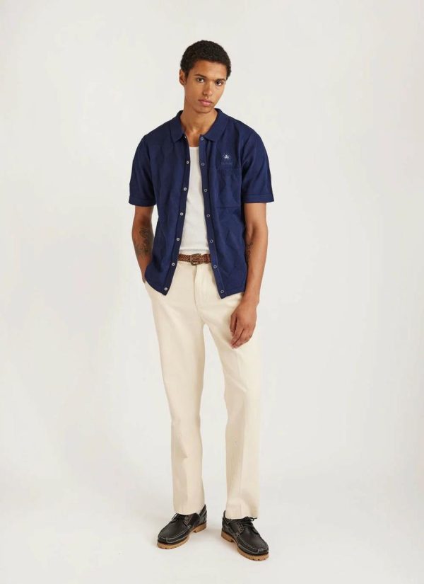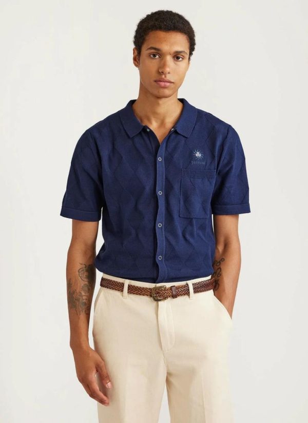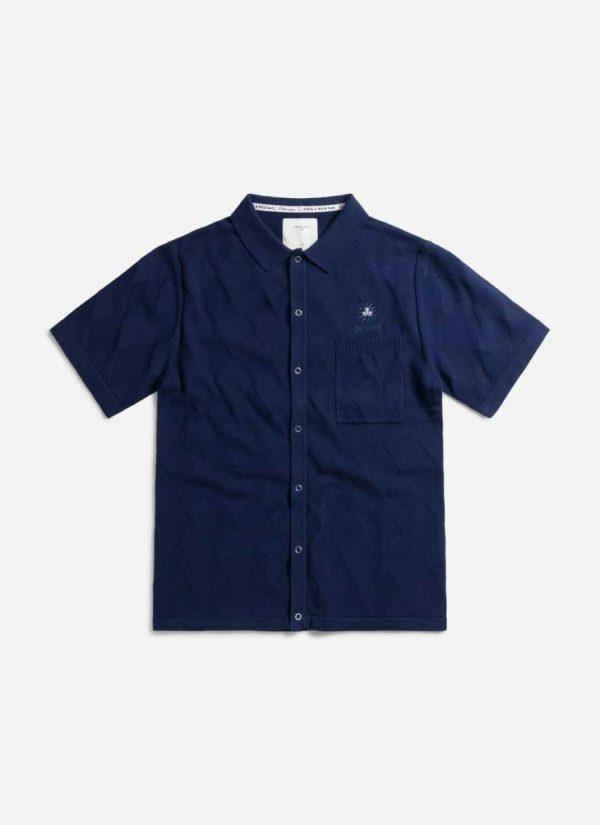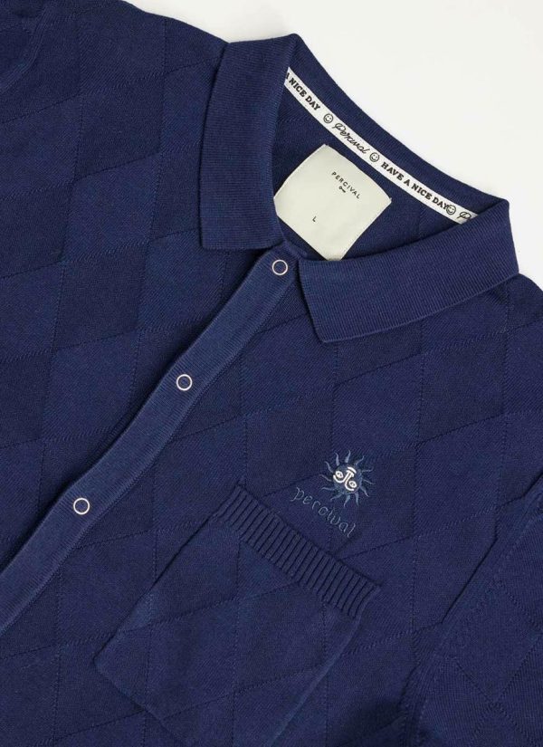 Men Intarsia Diamond Shirt | Knitted Cotton | Navy | Percival Short Sleeve Shirts