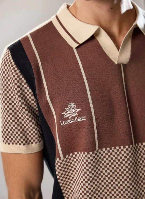 - Features: Men’s knitted shirt with short sleeves. Finished with embroidery on chest, open placket and stripes, this Umbro x PCVL brown knit shirt is ideal for those who want to be the best dressed in the room without breaking a sweat. Limited edition.