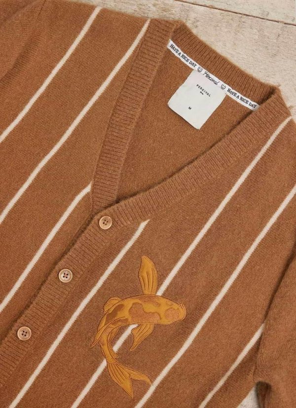 Part of our Not Suitable for Camping collection, exploring the wilderness never looked so good. Yes you can explore what ever you want to in this. Featuring designer designed Koi Fish embroidery and applique at front chest. Did you know the cardigan was named after James Brudenell, 7th Earl of Cardigan. Maybe he wore this one.