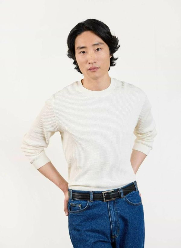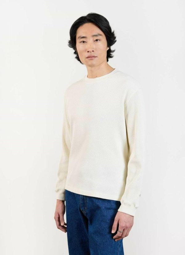 Men Long Sleeve T Shirt | Cotton Waffle | Ecru | Percival Long Sleeve T-Shirts