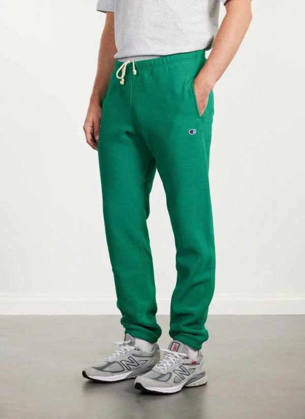 - Features: Men’s joggers with champion embroidery. Made from a 400 gsm reverse weave premium fleece, these green track pants are ideal for cooler weather.
