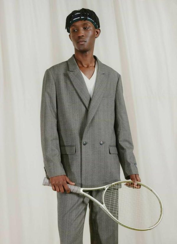 Game changer. Prince x Percival. A collection of fresh kit bits, vests, tees, 1/4 zip crew necks and this, fine summer tailoring. Keep advantage off court in this perfectly cut, easy to wear double breasted Blazer. Wear casual with navy jean, or go full champion and match it with the trouser, it is a suit after all.
