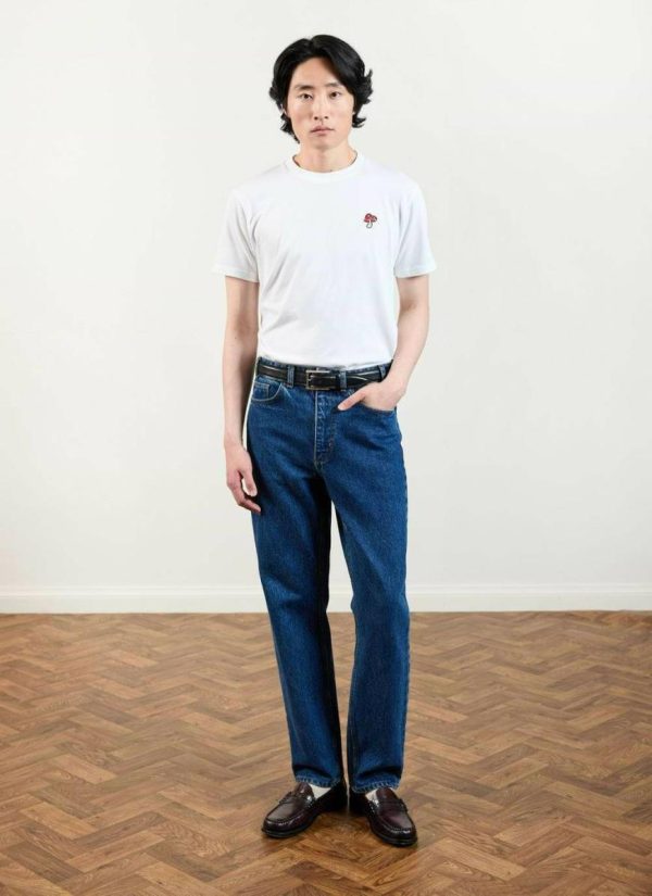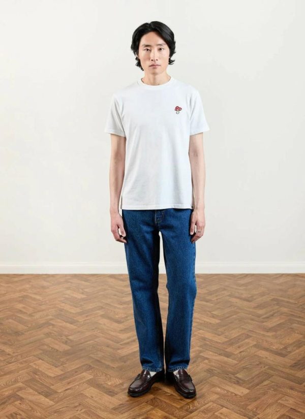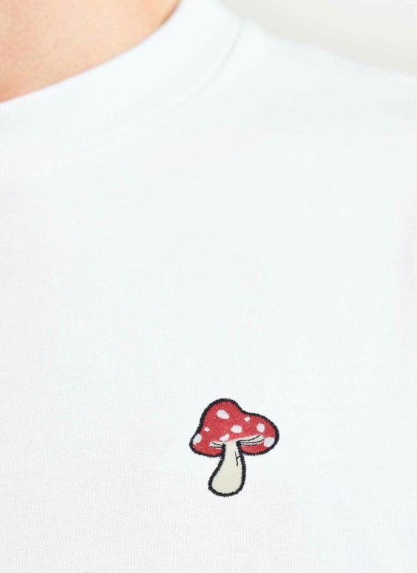 There is a fungus amongst us. Embroidery mushroom t-shirt. Why not. Celebrating natures internet, mycelium and the above earth dwellers, the mushroom is a closer brother to humans than plants according to their DNA. Quality embroidery t-shirt, part of Percival DNA.