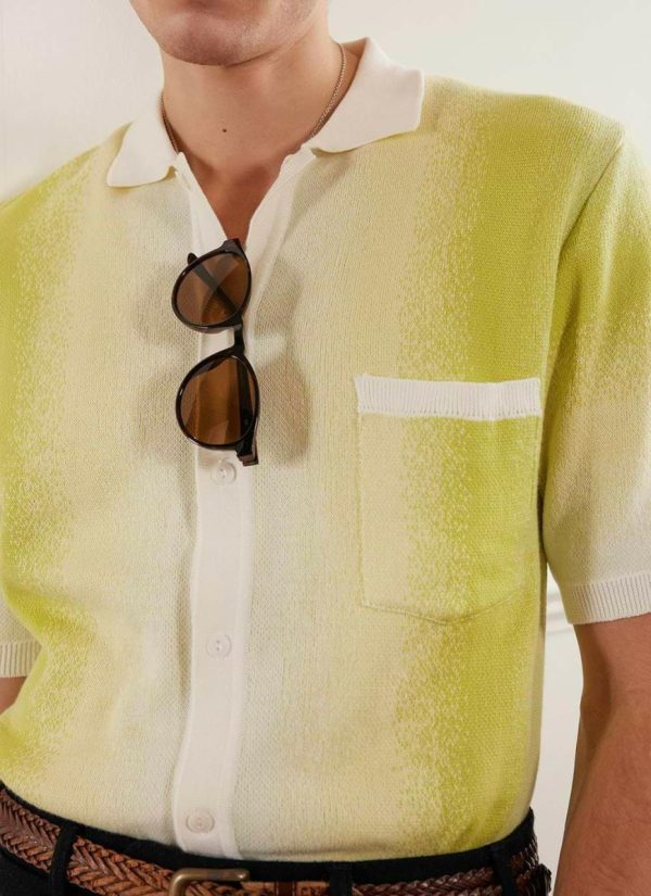 Men Ombre Knitted Shirt | Organic Cotton | Lime | Percival Knitted Shirts
