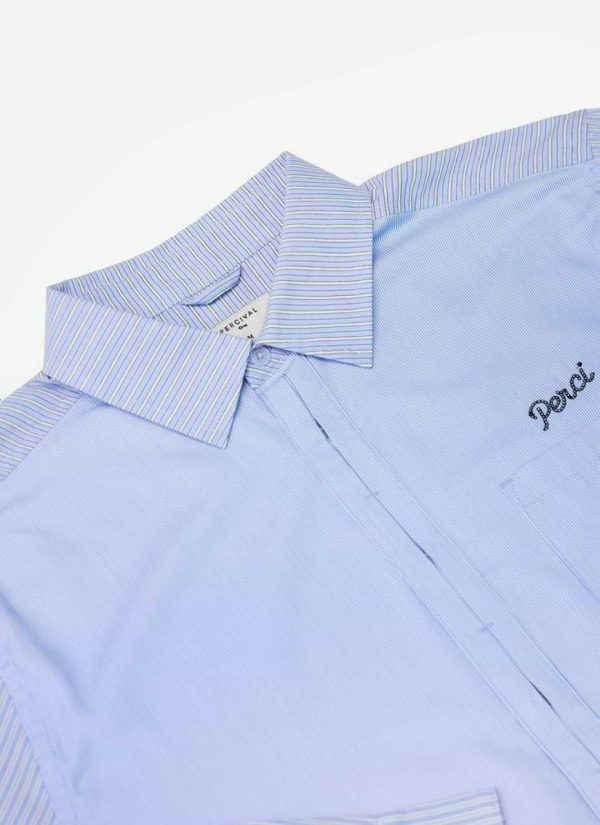 Men Patchwork Stripe Pearce Shirt | Cotton | Blue | Percival Boxy Shirts