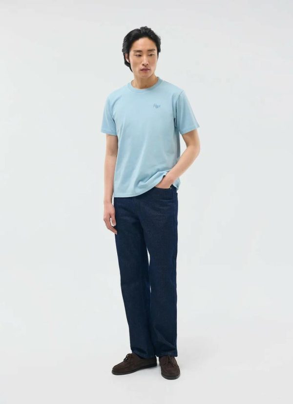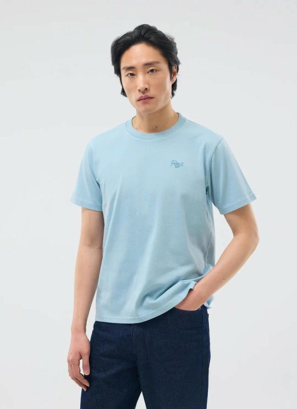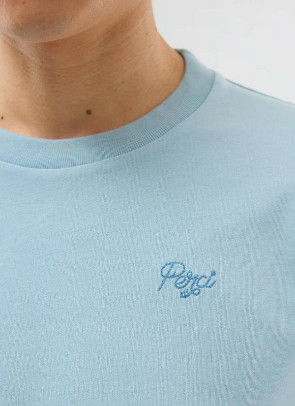 Men Perci Chainstitch T Shirt | Organic Cotton | Light Blue | Percival Regular Fit T-Shirts
