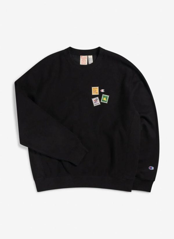 Champion and Percival – Celebrating some of the items you find at your local corner shop and the fine design detail that goes into the labelling of these items; the art of convenience. Limited edition Percival x Champion crew neck sweat, not quite a Penny Black. Hand drawn illustrations, woven into intricate labels. Applied onto heavy weight reverse weave Champion hoodies, sweats and quality tees.