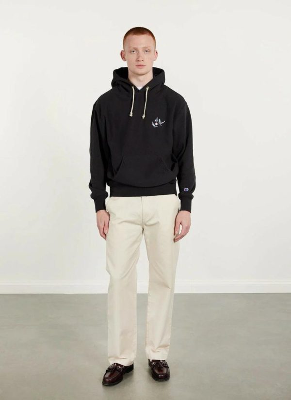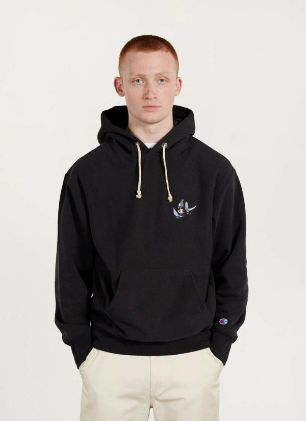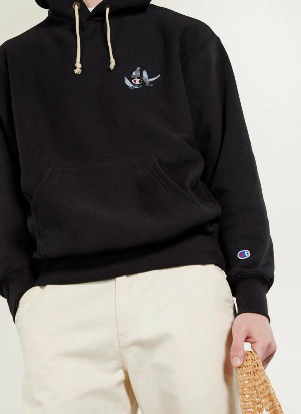 - Features: Men’s heavyweight hoodie with pigeon and Champion embroidery. Embroidered by Percival in London on a 400 gsm reverse weave premium fleece, this black champion hoodie is an easy-to-wear wardrobe staple.