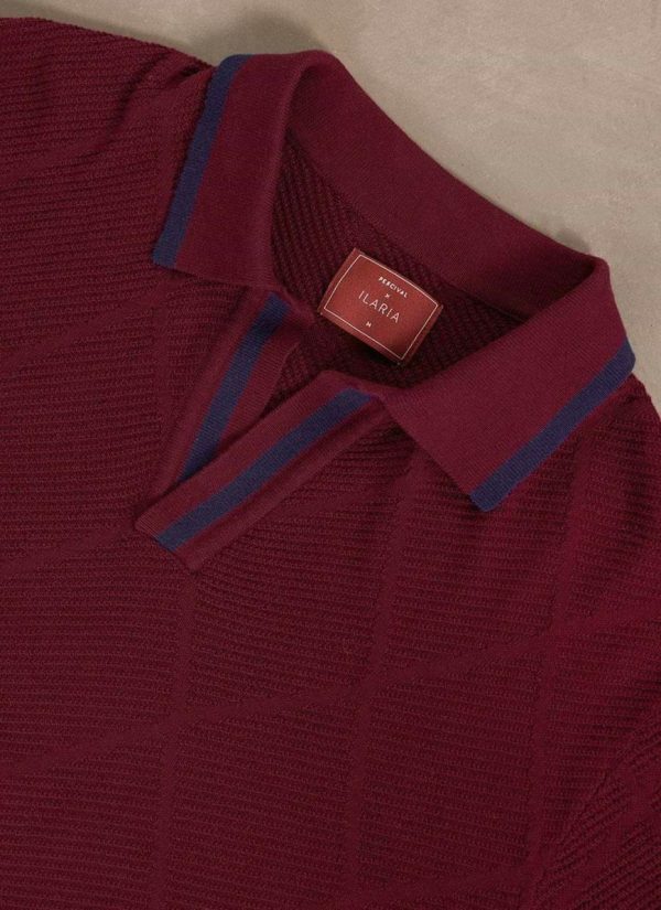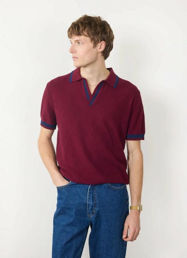 This the Raised Diamond Knitted Polo. Knit polo for the polo, maybe, maybe not. Knitted in a deep oxblood cotton, nice boxy fit but not to boxy, great front placket length and depth, it is summer in a polo for on or off the pitch. Style with navy linen pleated trouser or short, even our double breasted blazer, dark sunglasses, attitude- or not.