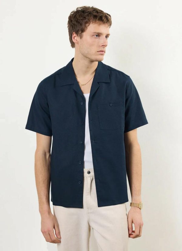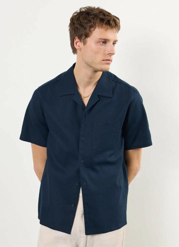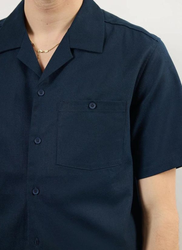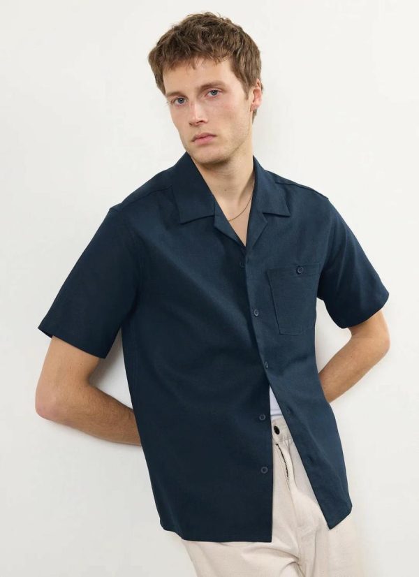 - Features: Men’s cuban shirt, this season with increased body widths for a looser, comfortable but true to size fit, this navy blue linen shirt is ideal for the spring and summer months.