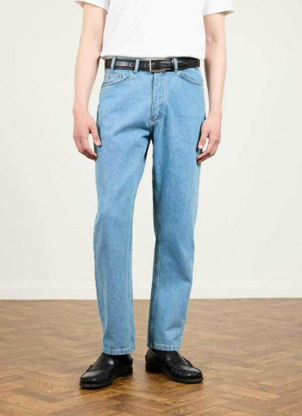 Keen jean, lean mean denim machine. Quality Percival brand jeans, famous since ages ago. Percival, head to toe. We’ve been crafting, grafting and finding the perfect fit, fabric, weight, wash and make. Hardware for your daily wear. These straight leg jeans are made in a perfect light blue wash. Percival quality denim.