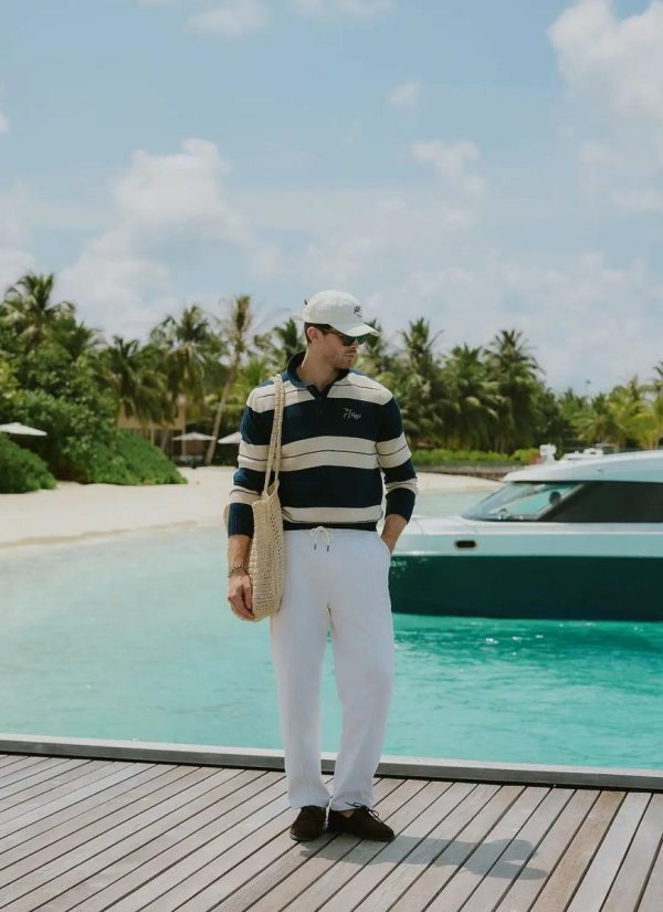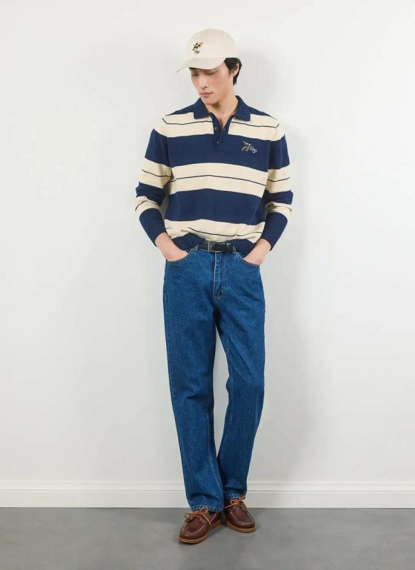 - Features: Men’s knitted polo, rugby top. Open placket, embroidery at front chest. Knitted in limited edition quantities.