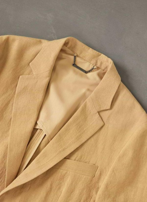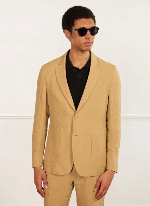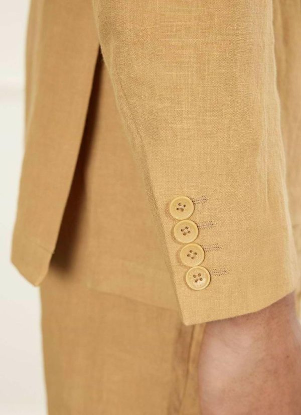 - Features: Men’s yellow tailored blazer made from 100% linen. With an increased body and sleeve widths for comfort, thin shoulder pads for a structured shape, this lightweight linen suit jacket is ideal for weddings & smart dressing. Finished with chest pockets, back vents and corozo buttons.