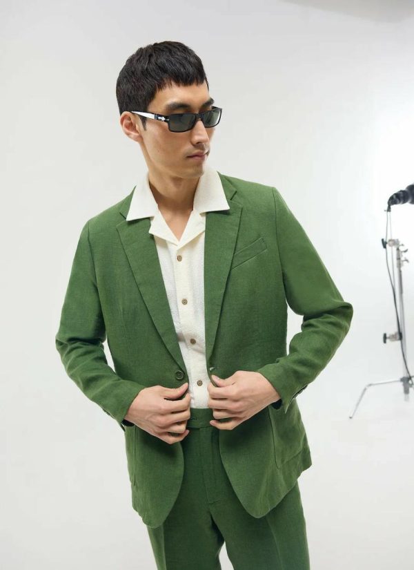 Men Tailored Linen Blazer | Forest | Percival Wedding Suits
