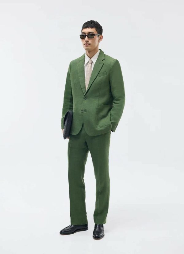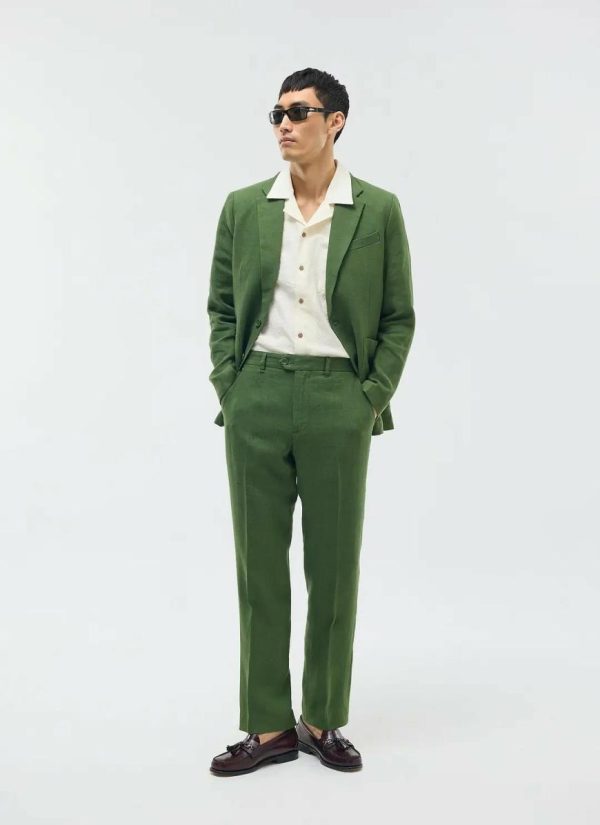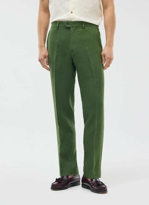- Features: Men’s Green Tailored Trousers, with an improved straight tailored leg fit with increased body widths but maintains a classic shape. These Linen Suit Trousers are ideal for Summer Weddings and Smart Dressing. A 4.5cm invisible hem turn up depth also allows for leg length alteration for personal preference.