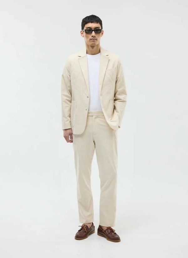 - Features: Men’s Seersucker Suit Jacket in Stone Cream made from a seersucker texture, with updated body and sleeve widths for comfort. The jacket features button-fastening, side patched pockets, chest welt pocket, back vents and internal welt pockets thin shoulder pads for a structured shoulder shape. This green seersucker suit jacket is ideal for weddings and smart dressing but can be worn in all occasions due to the versatility of the cotton.
