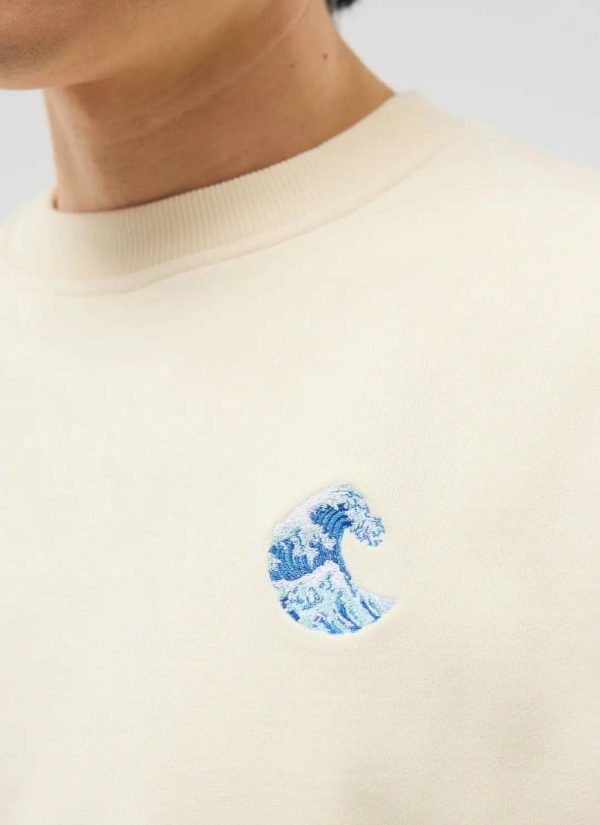 The wave, a disturbance or variation that transfers energy progressively from point to point. In this case a wave of water. I used to surf but it isn’t about me, it is about you and this lovely heavyweight sweat. Part of our new embroidered collection, all made from 100% organic heavy weight loopback cotton, made by our friends in Portugal.